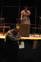 First, I believe that it is immediate and intimate. It is about these specific people at this specific time. In this way, our work must be focused on Acting 101 techniques; character analysis in the most basic and, to be honest, informative ways. Our actors may be doing some meta analysis of the play in their own time, but on stage they will be thinking about character, relationship, stakes, plot, objectives, reactions and emotional truth. The end.