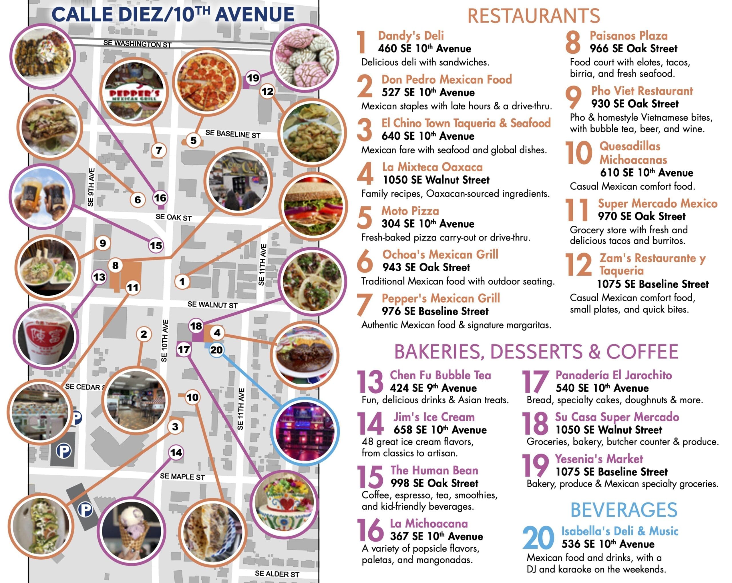 See the image gallery to the right, for some handy maps of nearby dining options.